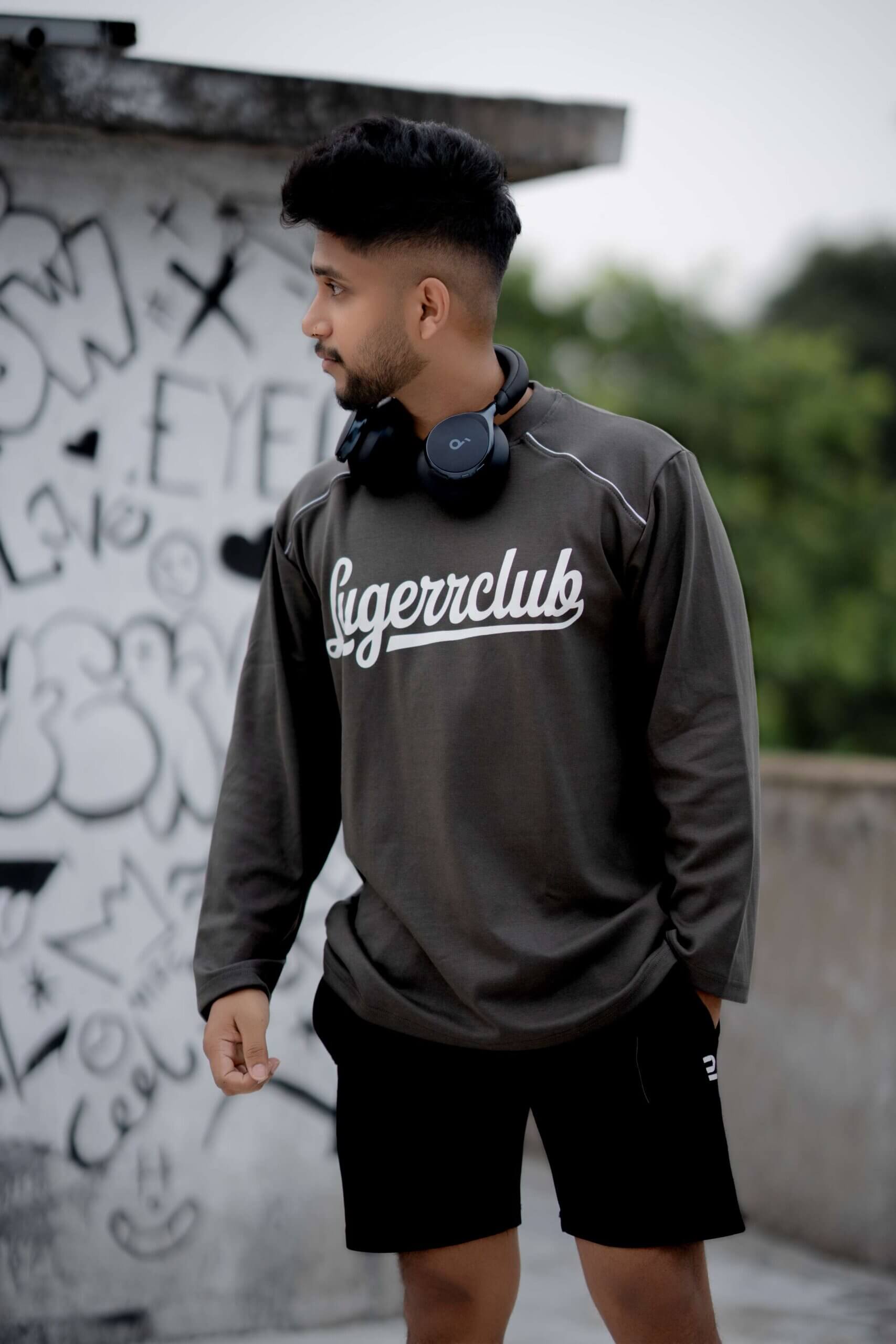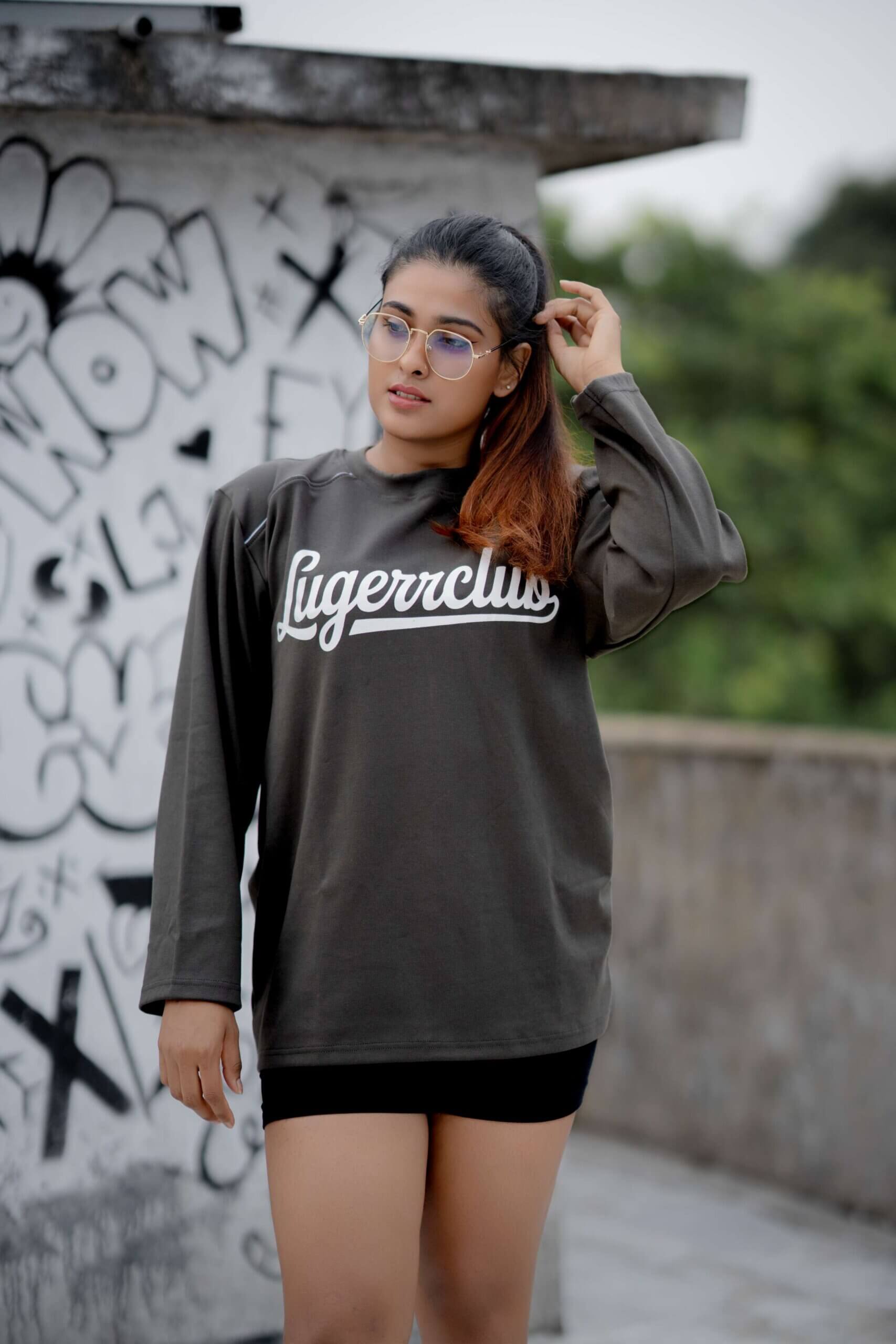 Lugerr-Club Italic long sleeve oversized tee – Gray